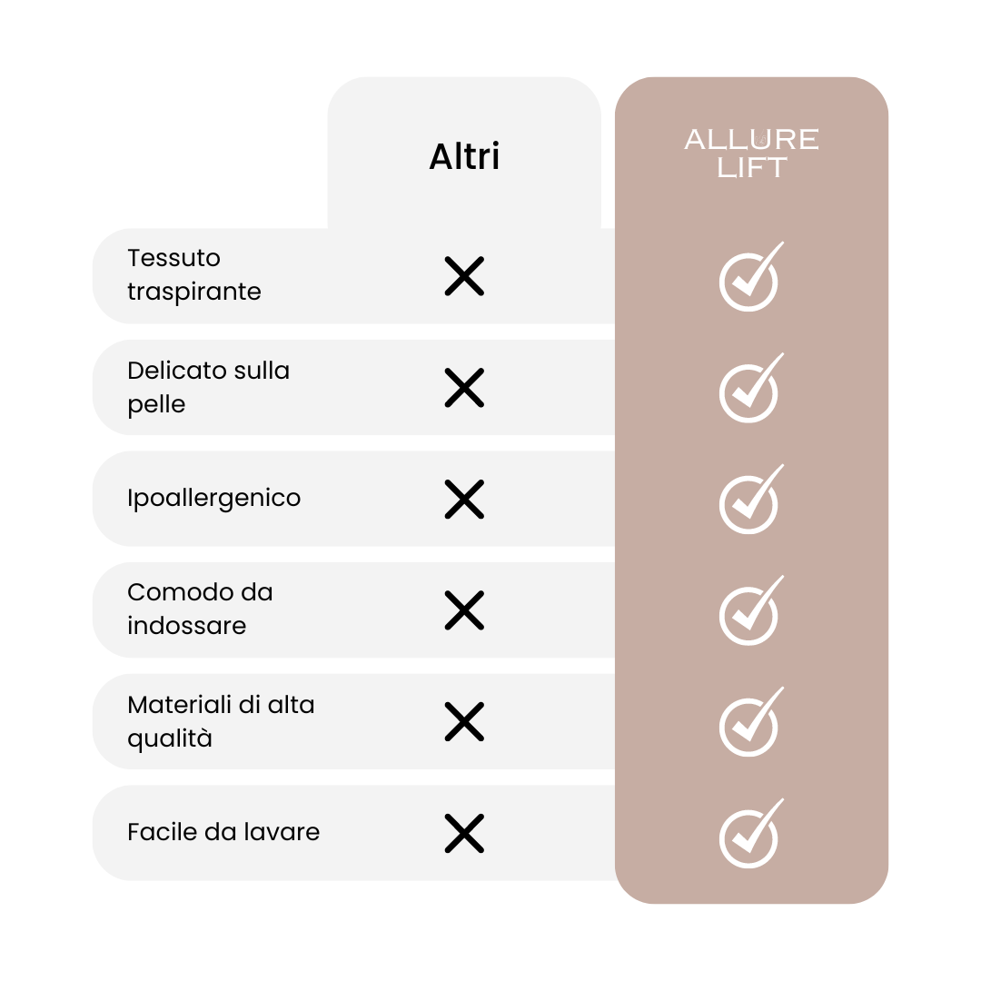 Allure Lift si distingue dalla concorrenza grazie alla combinazione di materiali di alta qualità, design innovativo e comfort eccezionale.